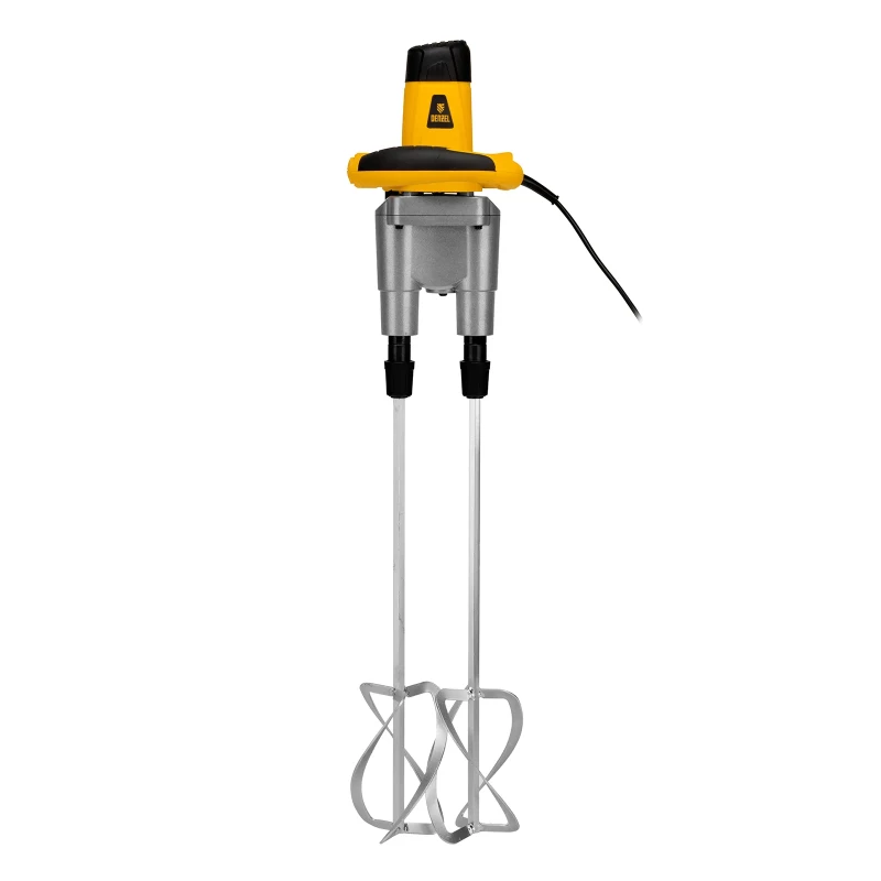 Ручной строительный миксер Denzel EM-2-1600 27911 мощностью 1600 Вт развивает скорость вращения 200-480/250-680 об/мин и используется в бытовых условиях для приготовления бетонных смесей, облицовочных растворов, клея для плитки и обоев, лакокрасочных материалов. Двухскоростной редуктор позволяет работать с растворами разной вязкости. Инструмент пригодится для проведения строительных и отделочных работ. ПреимуществаУстановка скорости 200-480 или 250-680 об/мин — электронный регулятор частоты вращения венчиков позволяет настроить оптимальный режим в зависимости от консистенции и типа раствора. Высокая производительность — крутящий момент 90 Нм позволяет качественно перемешивать густые растворы. Стабилизация оборотов под нагрузкой — оснастка вращается с высокой скоростью независимо от вязкости раствора, что предотвращает торможение и перегрев двигателя. Безопасность — усиленная изоляция предохраняет пользователя от поражения током. Плавный пуск — резких рывки при включении миксера исключены, также предотвращается перегрузка двигателя. Эффективная смазка — конструкция редуктора «масляный гейзер» обеспечивает перемешивание смазочного масла и его автоматическую подачу ко всем деталям миксера. Легкая подготовка к работе — быстросъемное крепление облегчает установку насадок-венчиков. Длина кабеля питания 3 м — удобно перемещаться по рабочей зоне, а также соблюдать технику безопасности при работе электроинструментом с жидкостями. Комфортная работа — прорезиненное покрытие рукояток снижает воздействие вибраций на пользователя. Удобное хранение и транспортировка — насадки легко снимаются, поэтому миксер не занимает много места. Гарантия 3 года — высокое качество миксера подтверждено производителем.