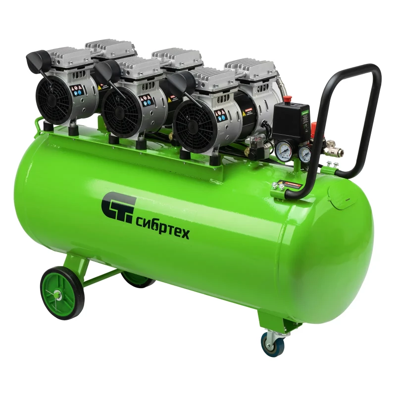 Компрессор безмаслянный малошумный МБ 2250/100, 2250 Вт, 100л, 400 л/мин Сибртех