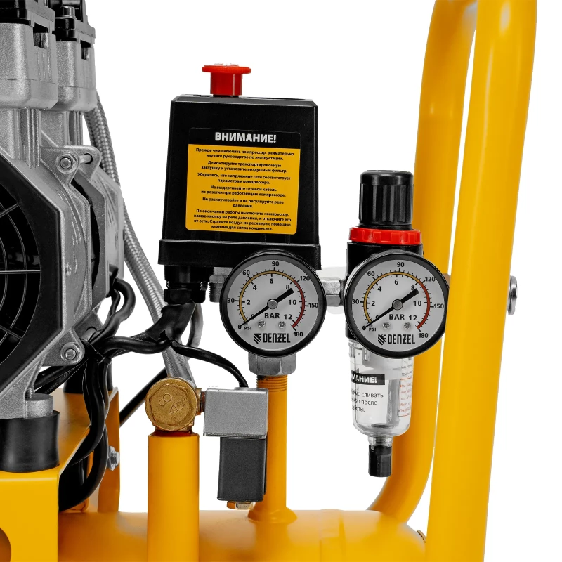 Контроль давления в ресивере и на выходной магистрали — компрессор оборудован двумя манометрами.