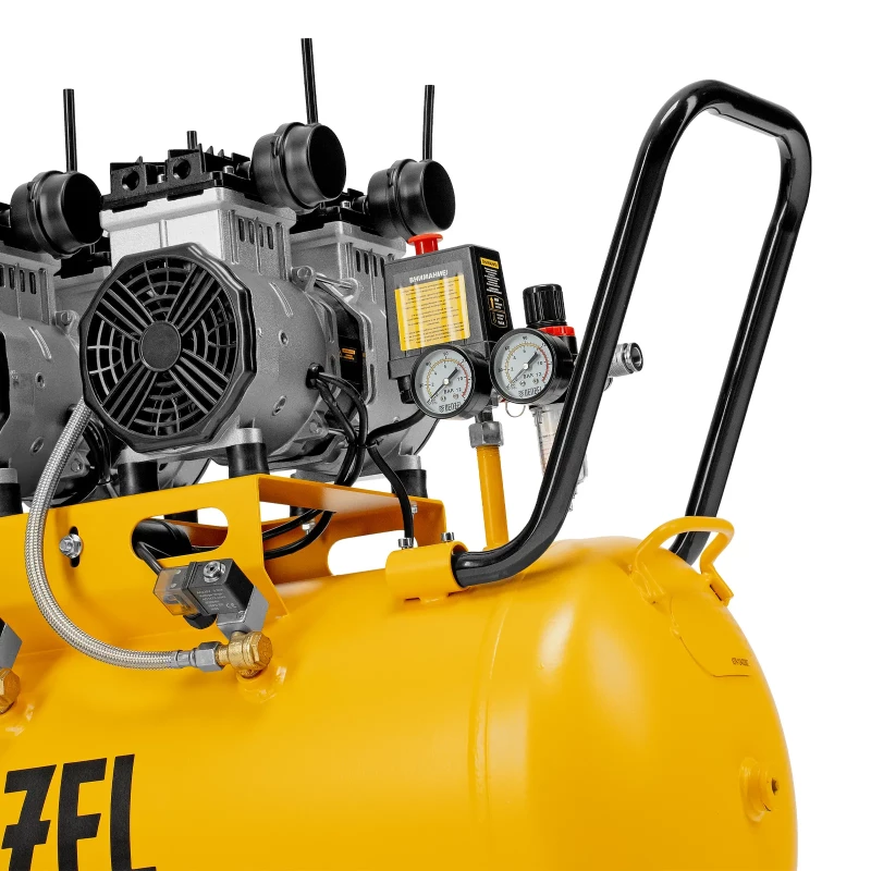 Компрессор безмасляный, малошумный DLS 3300/100, 3300 Вт,3x1100, 100 л, 570 л/мин ,блок управления Denzel