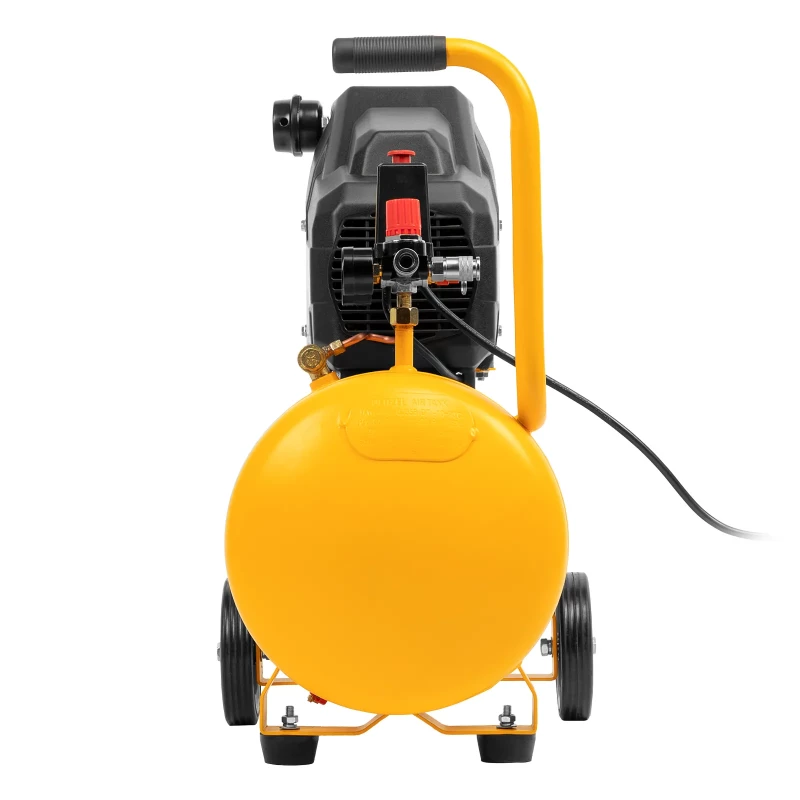 - Мобильность — транспортировочные колеса позволяют легко перемещать компрессор по рабочей площадке.