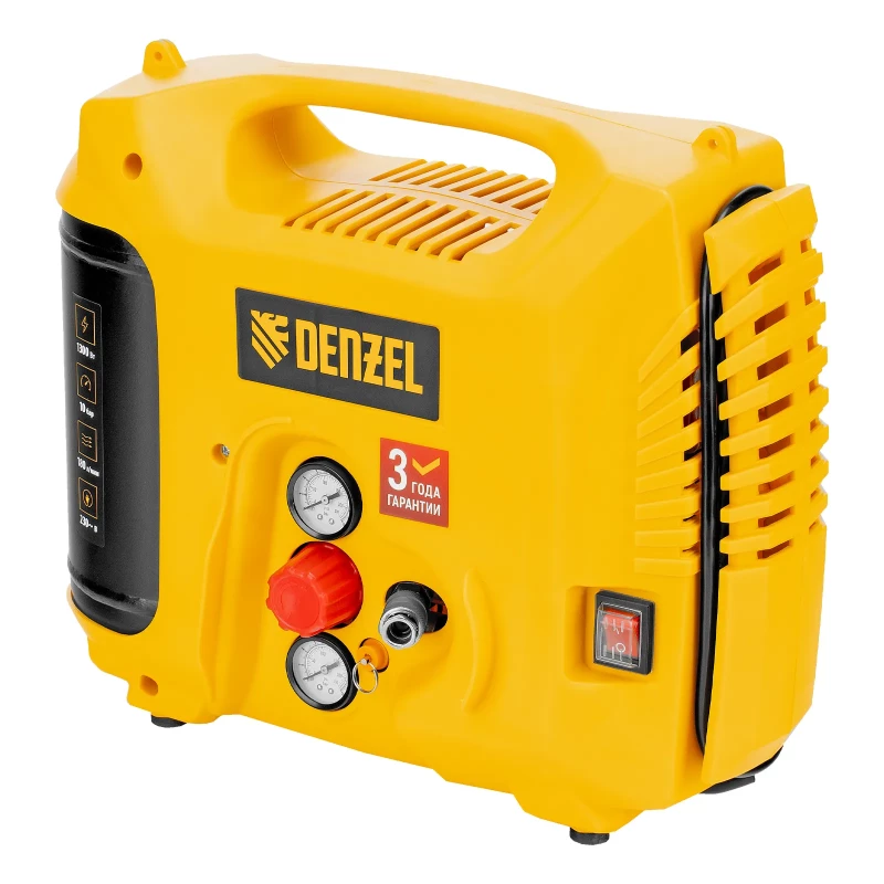 Купить инструмент Компрессор воздушный DL1300, 10 бар, 1,3 кВт 180 л/мин 5 л, с набором аксессуаров Denzel в Новосибирске по цене 14440 рублей. Смотрите другие 65 товаров в разделе Воздушные компрессоры по ценам от 6950 до 129480 рублей. Родительская категория - Силовое оборудование. Производитель - Denzel.