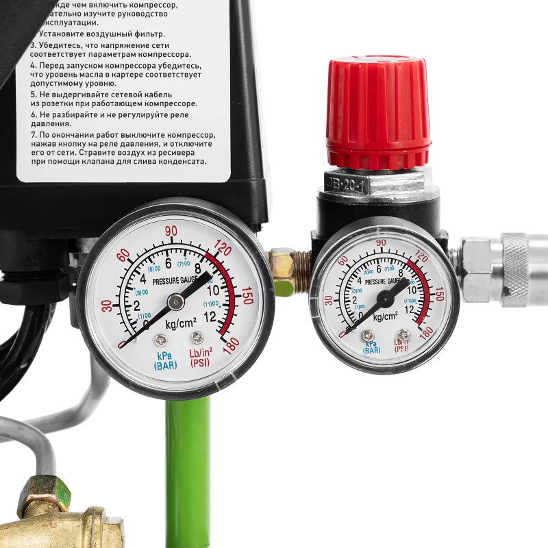 - Есть 2 манометра для контроля давления внутри ресивера и на выходе.