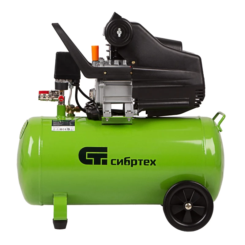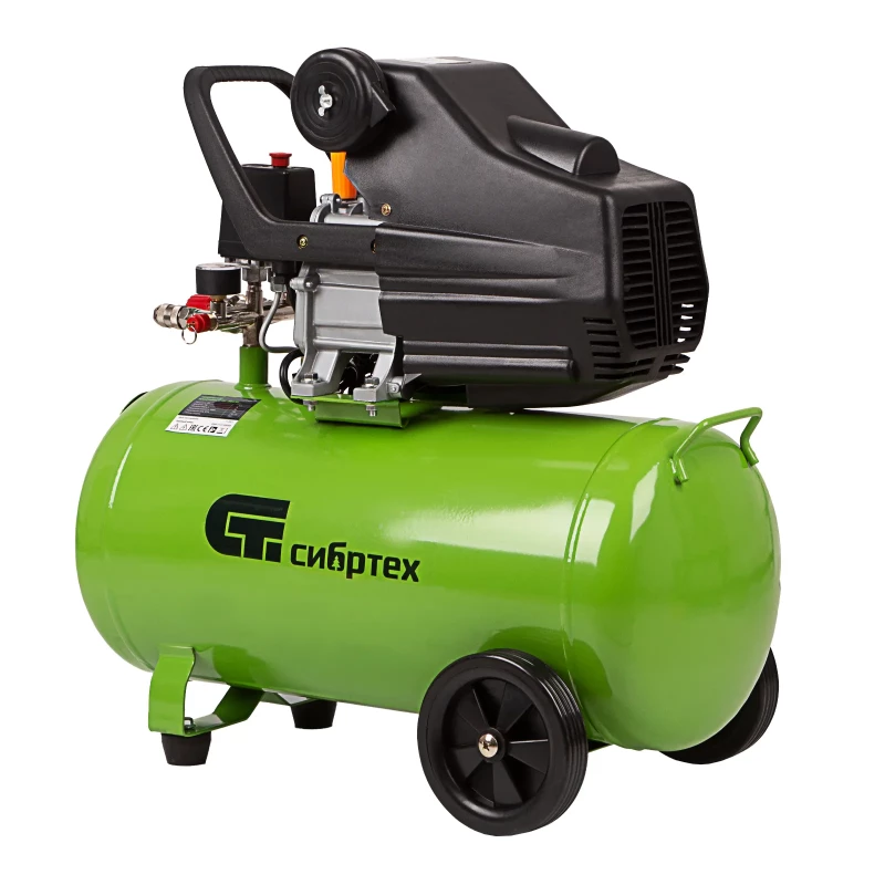 Компрессор Сибртех КК-1500/50 снабжает сжатым воздухом продувочные, моечные пистолеты, дрели или другие пневматические системы.